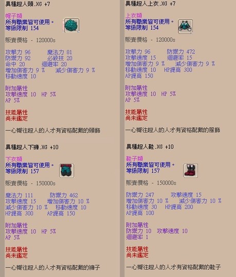 【 通用裝】異種超人裝XG+7(頭上)XG+10(下鞋)屬性內詳