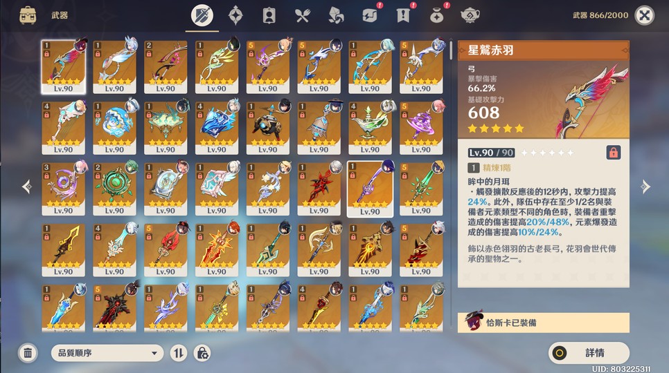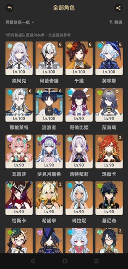 【女、60等、55金角、65金武】請先看商品介紹 原神進度號 滿命滿精多