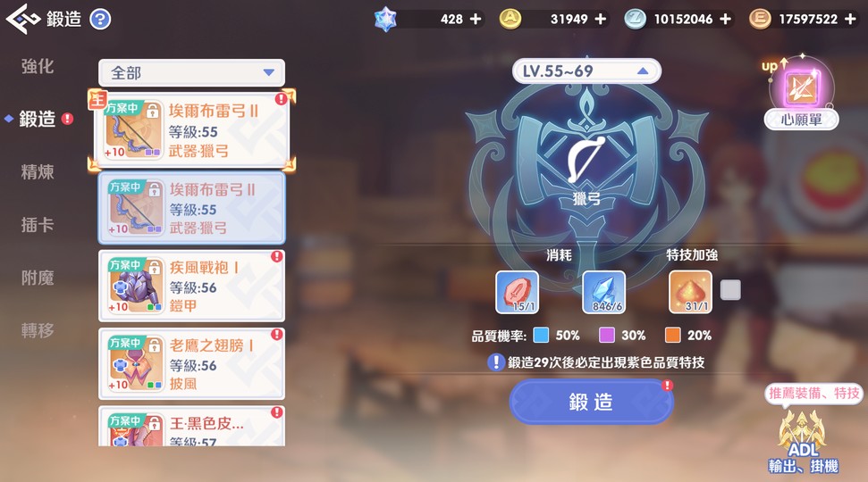 武器雙邪弓+獸弓卡,其他裝備也都配上靈巧或敏捷屬性