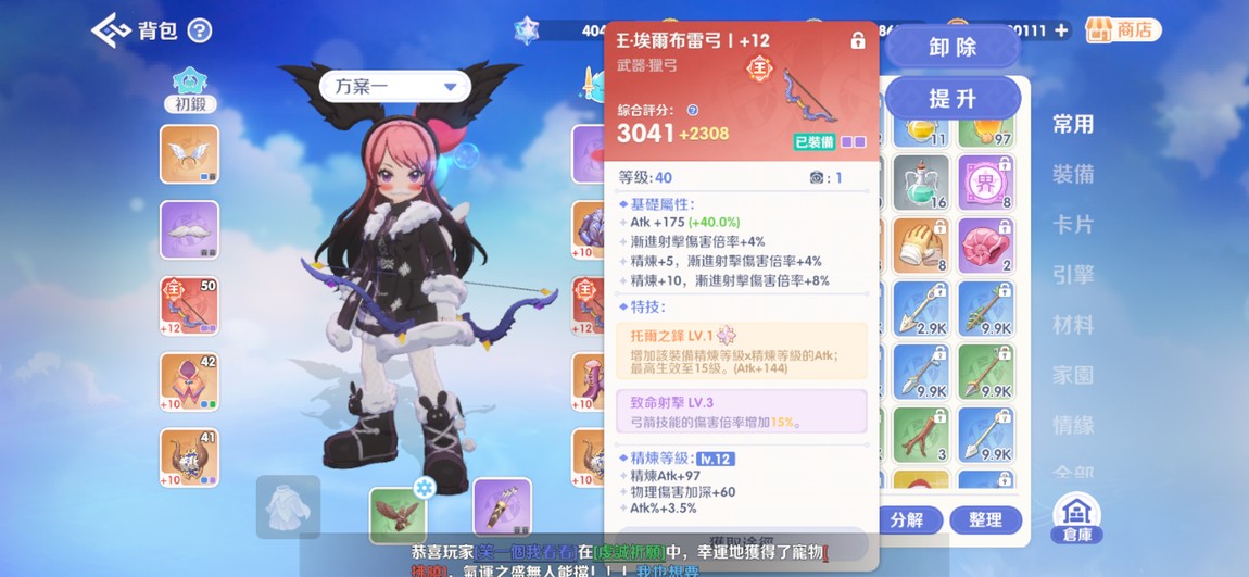 【67等】售 月夜貓獵人 防裝全身+10 武器+12紅武紅寵 女角