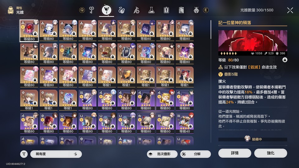 滿命瑕蝶白厄2命昔漣1命長夜月1命風菫1命緹寶2命琉瑩1命大理花2命忘歸人靈砂(都有光錐3隊高練度隊伍異裁隨便打 價錢可議