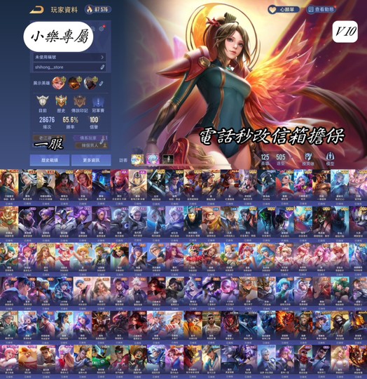 【Garena帳有綁定、鉑金、V10、125英、505造】刀鋒鳳來/鶴羽星尊/銀翼/燼滅女王/仙鈴幻響/星海之霸/星際議會/合金進化