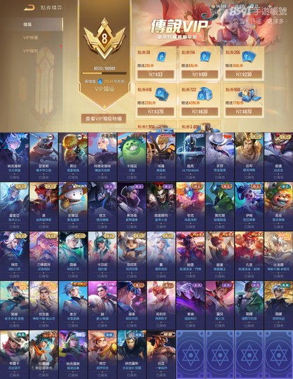 【Garena帳無綁無連、鉑金、V8、104英、205造】V8 只綁G