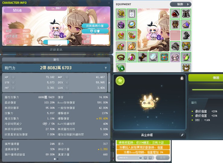 開拓 蓮身上都有黑翼/露耳/永久3B寵各3隻及加功寵裝