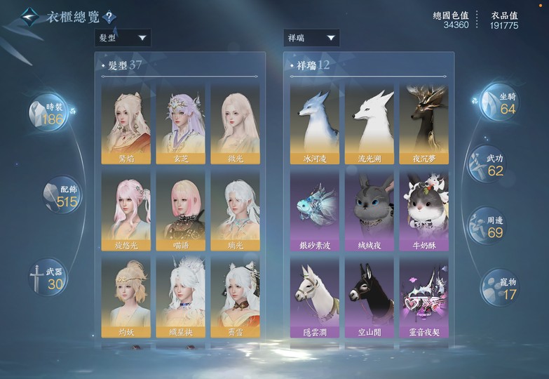 【69等、瑤光聽雪、女、素問】20已用天賞(2自染)+3轉盤頭(灼妖、旋悠光、微光)+轉盤武器小惡魔 3國色