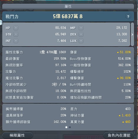 表功應該會在高個五百~一千萬,截圖時普通寵裝放在分身練等打王,P寵為經驗寵一套