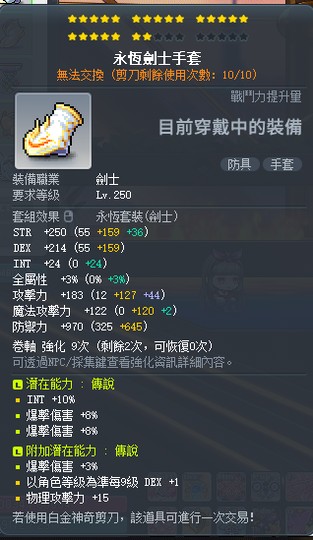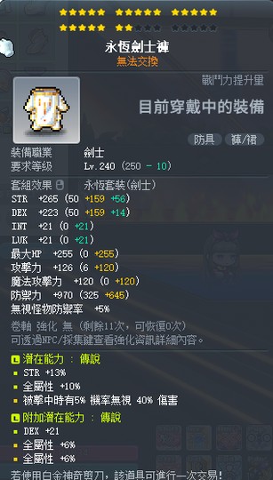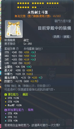 目前永恆以外有把裝備剪去給劍豪練等破秘笈,劍豪身上都會白剪好隨時可再換回