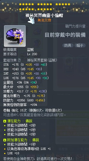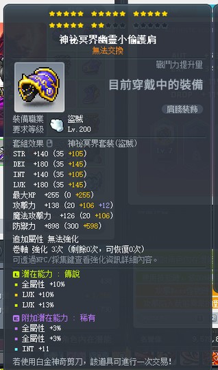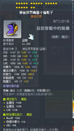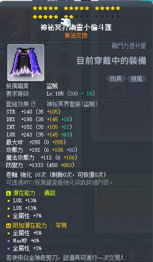 分身夜使者 神偷也都有天上跟基本的裝和掉寶裝 本尊分身都有雙終爛