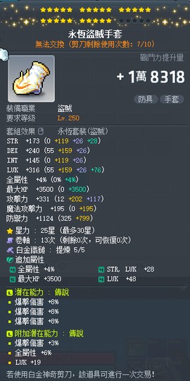 【永恆盜賊手套】25星四爆永恆盜賊手套 附加2.5排 白5全b~ 傑諾用全屬