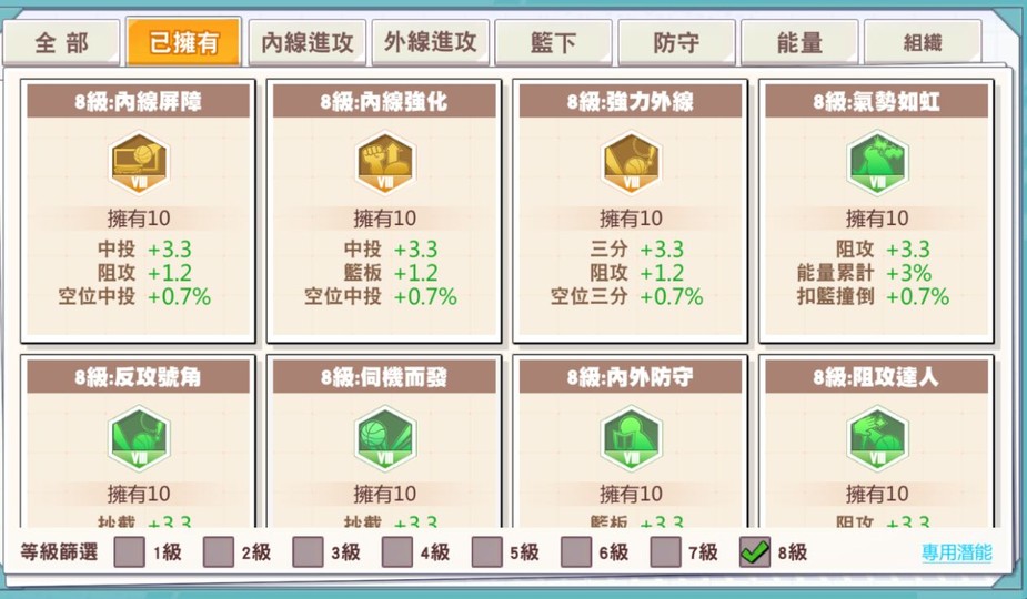 集訓好用角大部分都有練