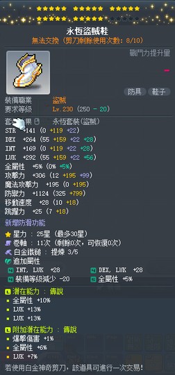 【永恆盜賊鞋】雙傳25星36%幸永恆盜賊鞋 附加1爆76幸 白3全b~