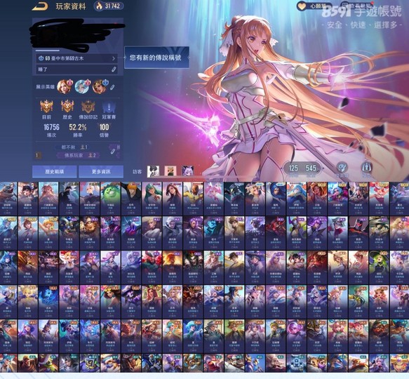 【Garena帳有綁定、璀璨傳說、V9、125英、550造】550造小神帳號歡迎真心想接手的來談,多抽獎,現光影,價格可談