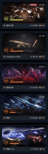 【白金、25槍、11刀】包售後 2025冠軍、猛攻之境、暗夜行者、黑波、奇點、起源、離子、掠奪.多手感搶