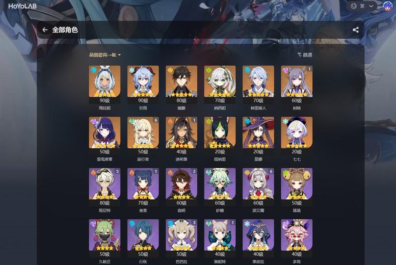 【女、55等、11金角、0金武】瑪拉妮 草神 雷神 鐘離 甘雨等等...共11金號