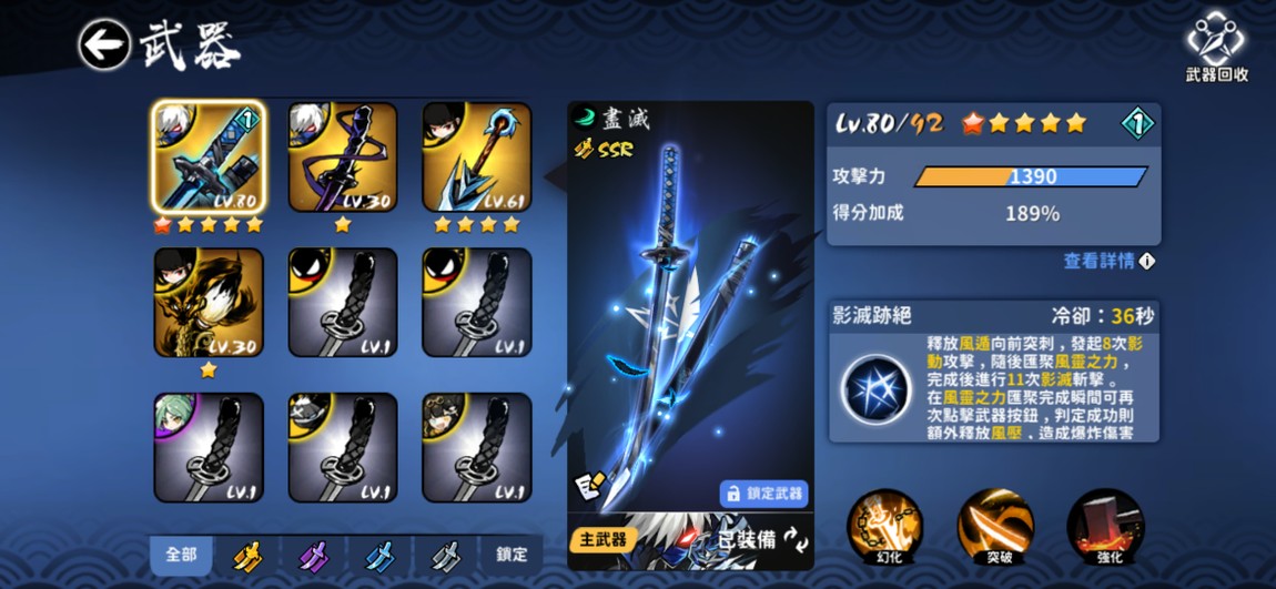 【80等】80等一命超強準白+突破1專武盡滅5ssr角色4ssr,武器( 多勾玉)便宜出售