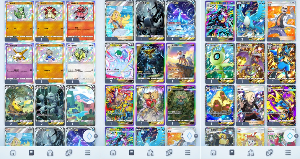 ✦ 彩鑽:火焰鳥EX、西獅海壬EX、鬃岩狼人EX、投擲猴、三地鼠EX*3、帝牙盧卡EX、大尾狸EX、阿爾宙斯EX、爆肌蚊EX*2、露奈雅拉EX、頓甲EX、阿伯蛇、伊布、圓陸鯊、蚊香君、花樣海獅、捷拉奧拉、嘟嘟利、穿山王、鴨嘴火獸、拉蒂亞斯、無畏小子、肯泰羅
