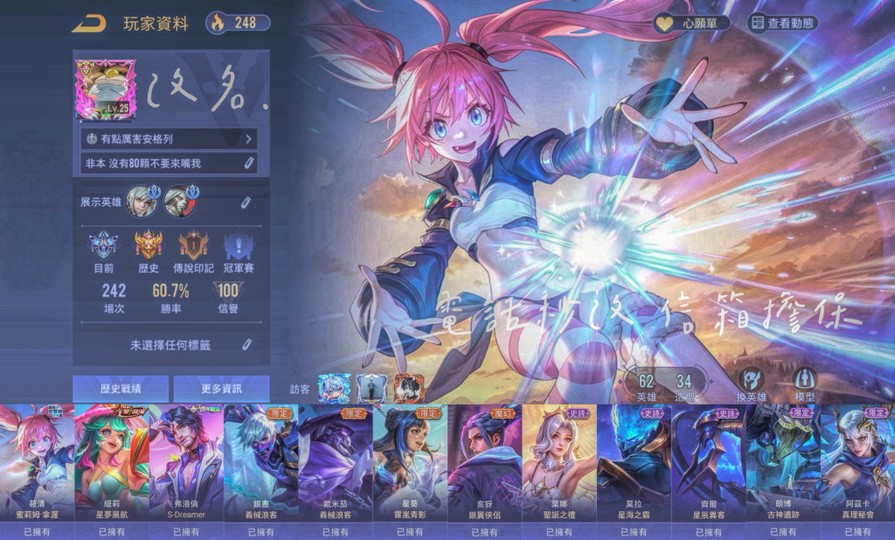 【Garena帳有綁定、鑽石、無VIP、62英、34造】密利姆全套 新展堤莉 2000實收