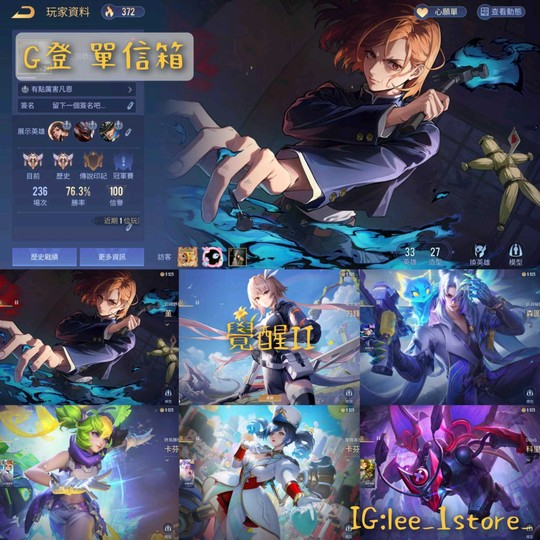 【Garena帳有綁定、青銅、無VIP、17英、18造】咒術二代釘崎+盛典卡芬尼+貓妖森圖