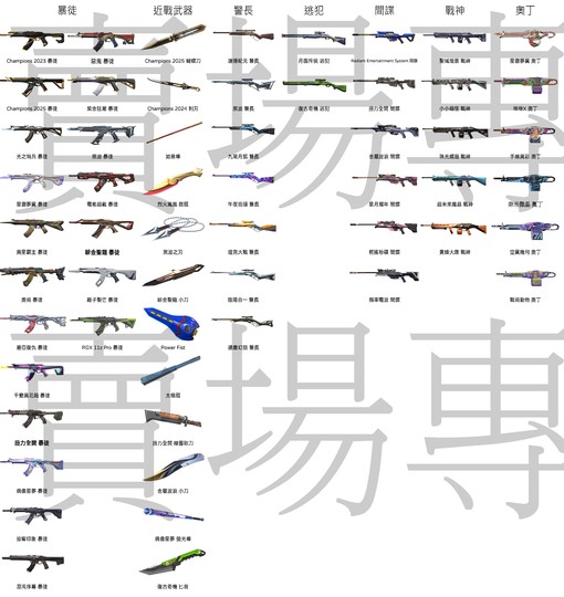 精選副武:邊陲紀元 (神射/警長)、至尊龍燄 (判官)、VCT x FNC 制式手槍。