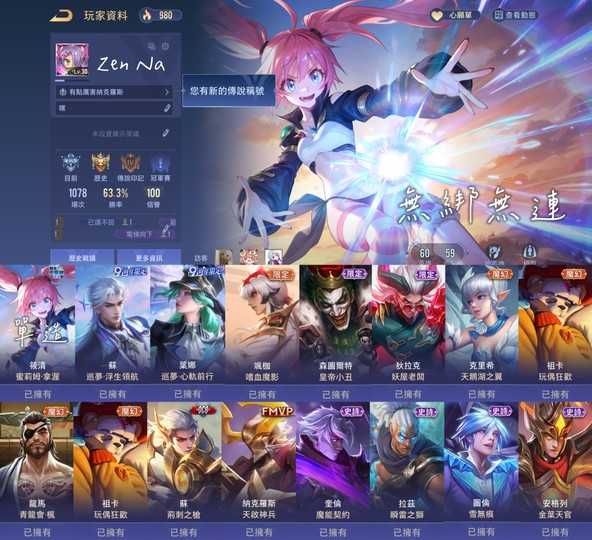【Garena帳無綁無連、鑽石、無VIP、60英、59造】密利姆單造好綁多英多造🔥