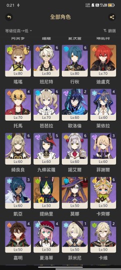 原神目前角色武器都小保墊都50