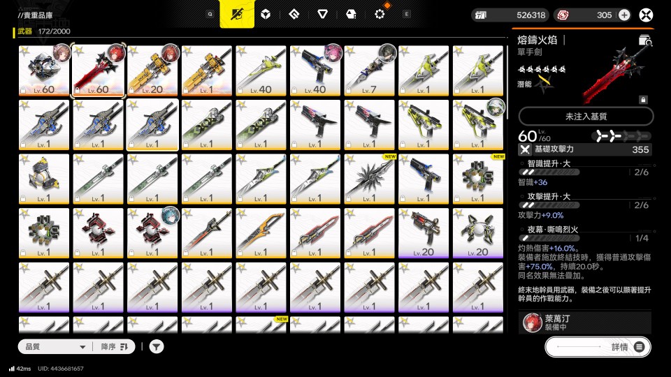 【35等、男】M2 萊萬汀+專武、伊馮、餘燼1潛、艾爾黛拉1潛、騎士精神、昔日精品*2、武庫箱
