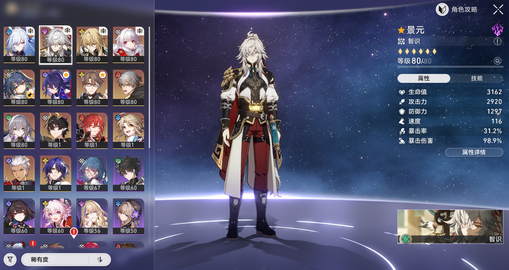 *角色:01镜流+01景元+罗刹+希儿+云璃+布洛妮娅+盾丹+真理+archer