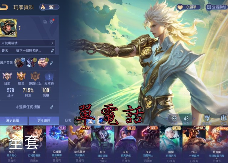 【Garena帳有綁定、戰場傳說、V7、29英、43造】單電話 莫拉碎心 丁期 都全套 時雨 一拳 fmvp 炎融