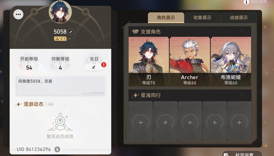*账户详情:女开拓者,等级52。用户名未设定,生日未设定