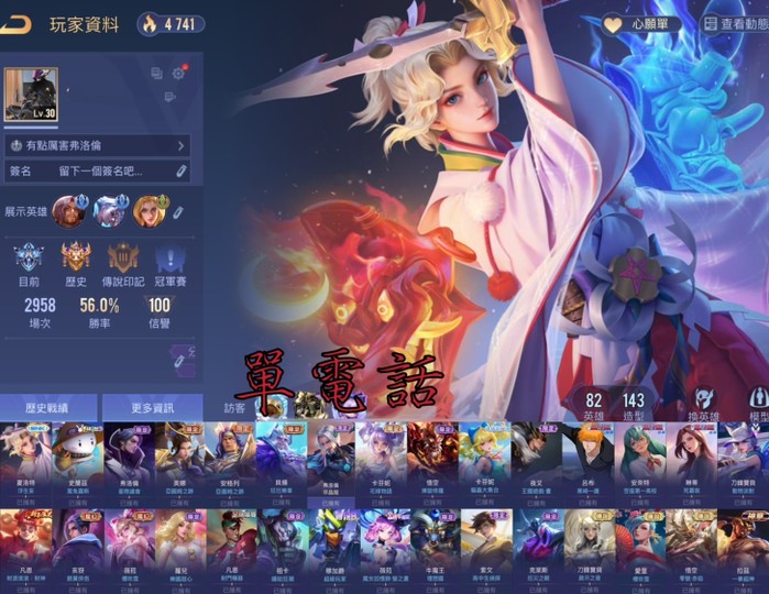 【Garena帳有綁定、璀璨傳說、V6、82英、143造】歷史璀璨 浮生妄 兔羅 星際 4個1200傳說造型 死神 亞圖姆 花嫁 貓蟲