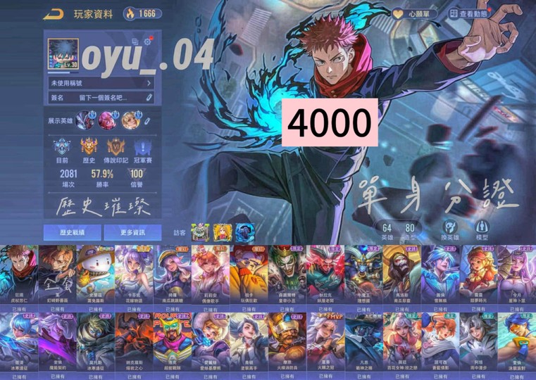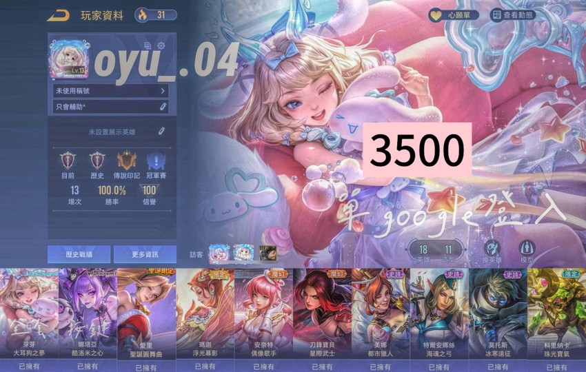 物品種類: 帳號