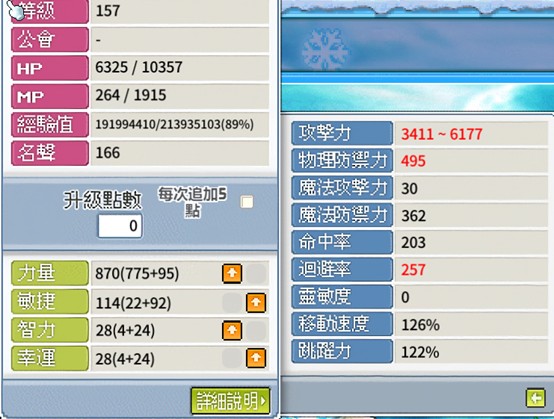裝備額外總屬性 +187屬
