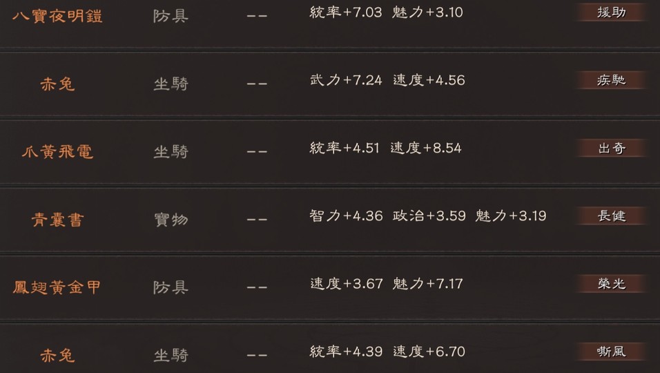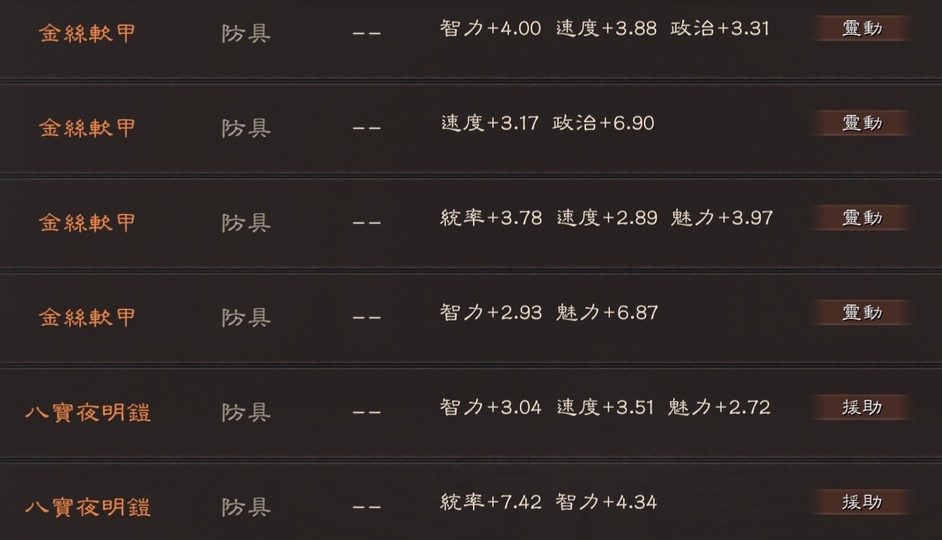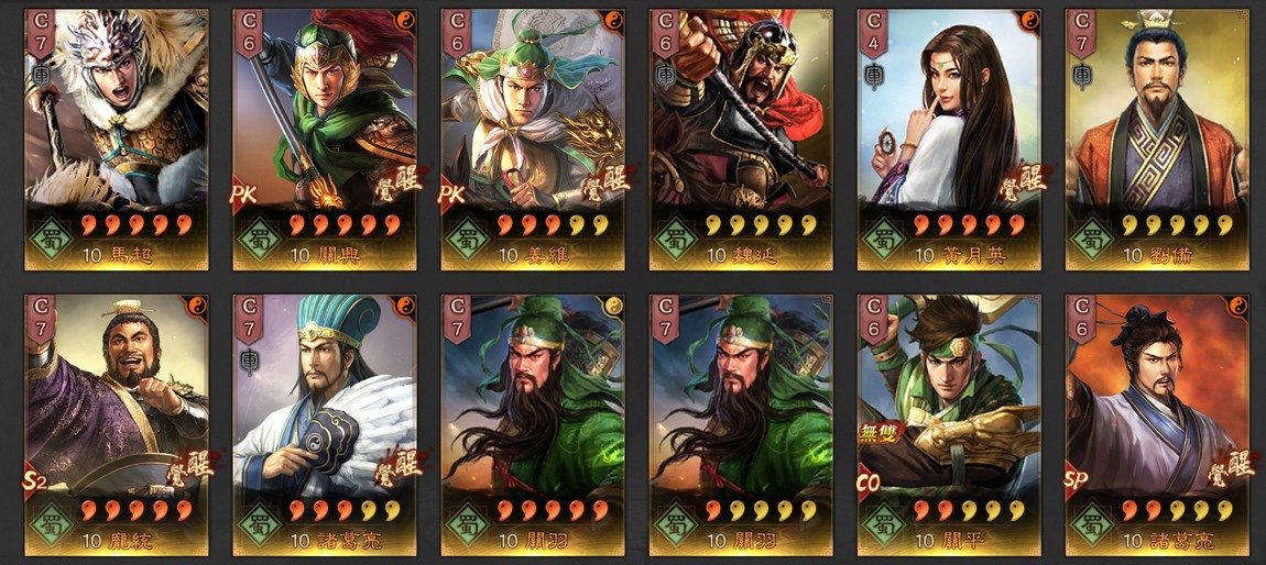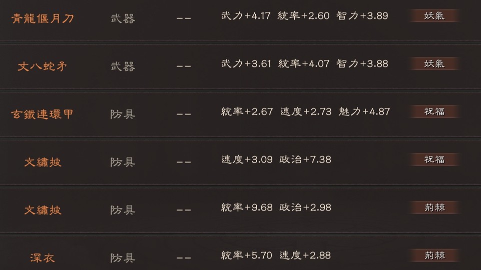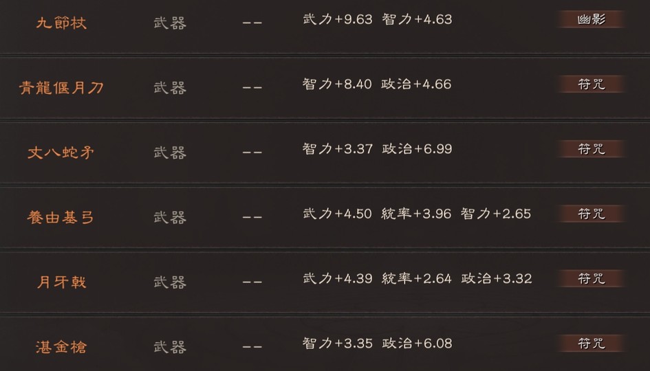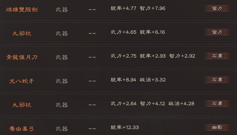 可組 太尉盾 榮光槍(有無懼) 富貴騎 山河盾 麒麟弓 北伐槍 群弓