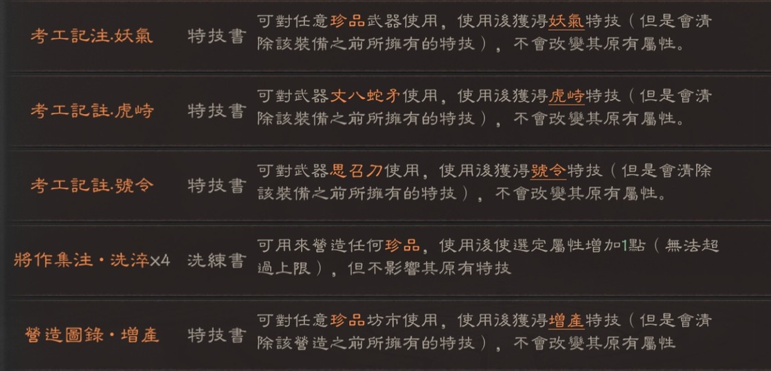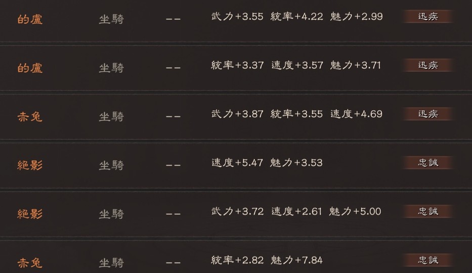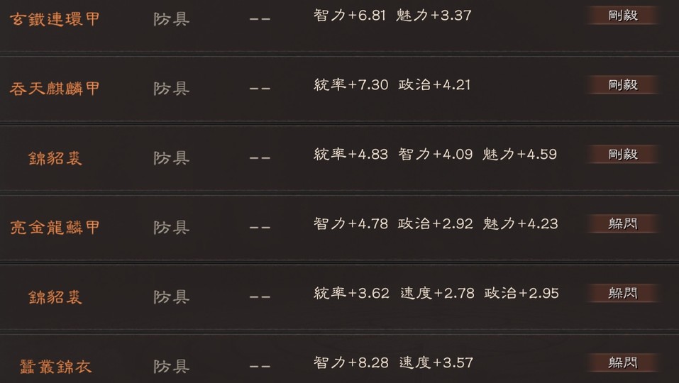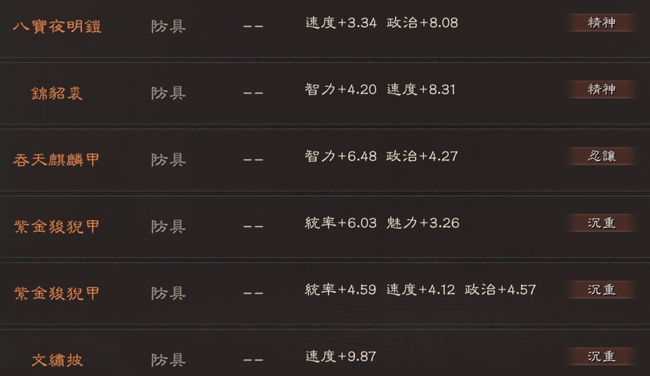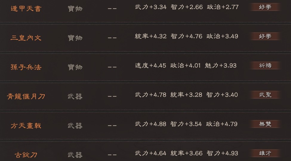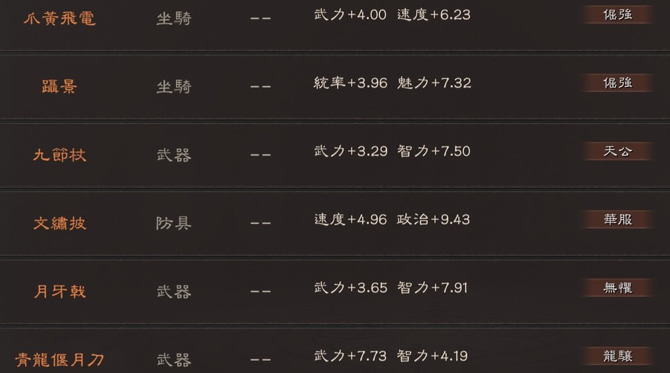可組 太尉盾 榮光槍(有無懼) 富貴騎 山河盾 麒麟弓 北伐槍 群弓