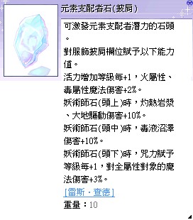 【元素支配者石(披肩)】妖術/元素支配者必備石頭,對全屬魔法+15% 增傷爆表!