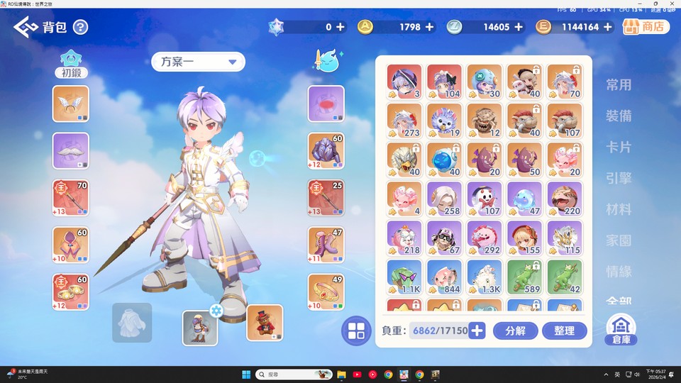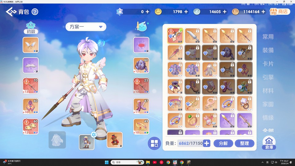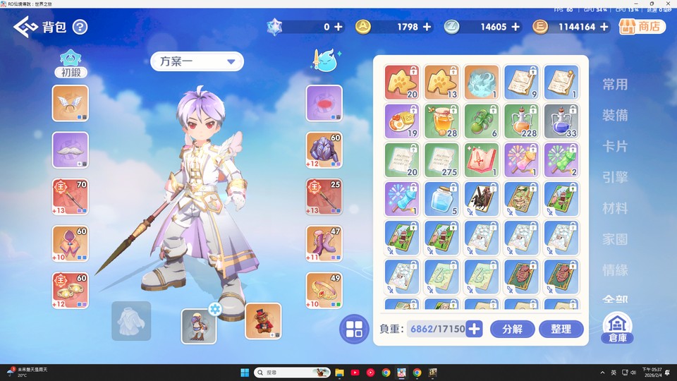 看圖說故事 目前正在弄70裝 角色已婚另一半是專業補師每天都會上線