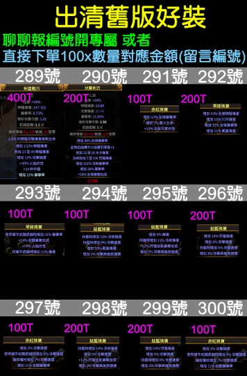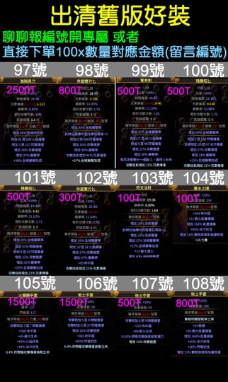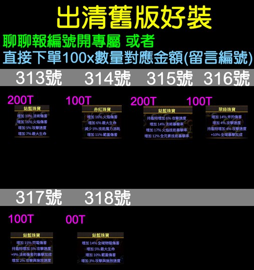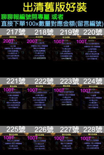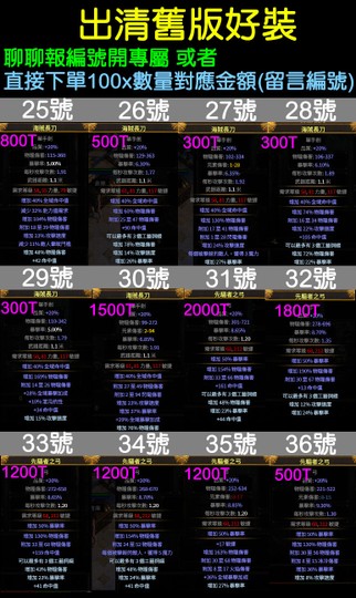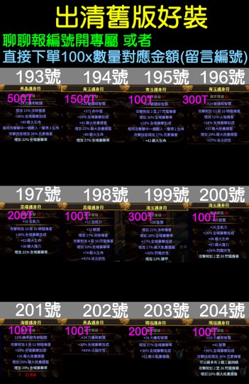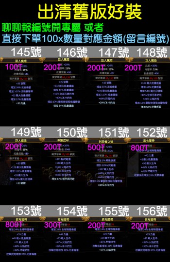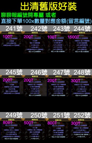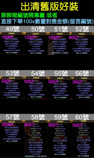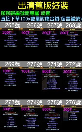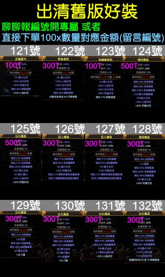 直接下單100x數量對應金額(留言編號)