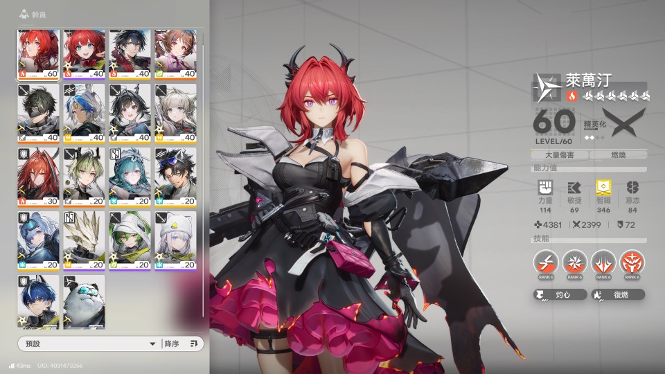【47等、男】萊萬汀(0+1)、艾爾黛拉(0+1)、餘燼、黎風