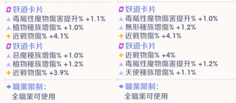 身上8張紫卡 妖道卡片有4張已畢業