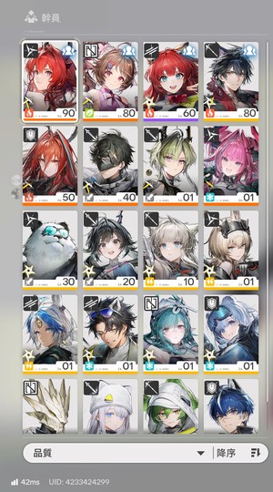 【51等、男】萊萬汀2+1 愛爾黛拉1+2餘燼1+1黎風1+1伊馮。基建礦機全搞好 大小月卡