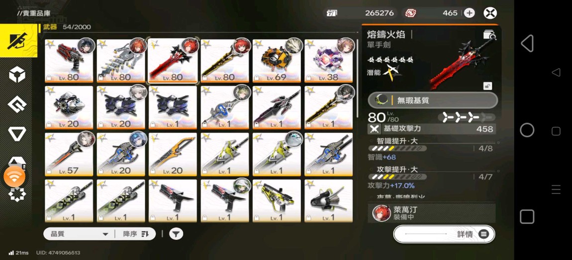 【52等、男】主打萊萬汀3階 專武2階 角色只缺別禮.伊馮