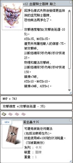 +12血腥騎士盾牌[黃金蟲][HP+743/攻速+5%]