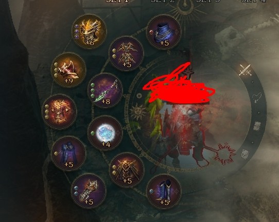 +5暗殺斗篷、+5祝福破壞竟假、+3祝福怨恨耳環、+1祝福福變怪戒、+3祝福黑虎皮帶 、死騎盔甲、死騎手套