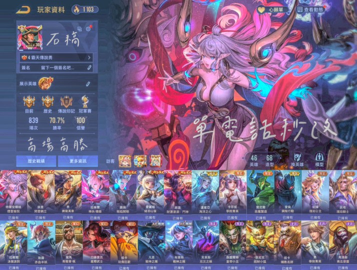 【Garena帳有綁定、先鋒傳說·新月、V7、46英、68造】特爾新年 勇新年 銀晝新年 拉維爾新年 圖倫新年 綁好高勝 詳細如圖可直下