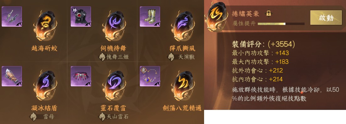 絕技:殘心三絕劍(天曦四象 朱雀)、冰火絕滅(明河曙天 長鯨天斗)--2顆
