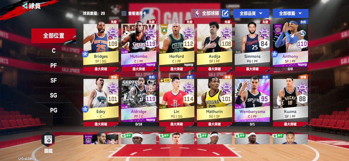 王朝全伺服第三,滿突特殊卡面,雙中鋒大前鋒滿突,後仰大師滿突紫卡,雙月卡全開,全部都是滿滿台幣,線上王朝街頭輕鬆打。