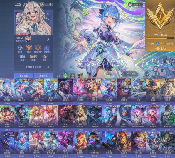 【Garena帳有綁定、戰場傳說、V7、72英、110造】克里希魔女 文鰩 緋淚櫻吹雪 洛倫星際 浮生妄 真我 碎雲 精衛 雲飛墨
