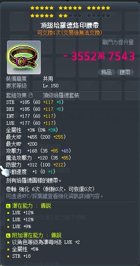 【頂級培羅德烙印腰帶】22C33幸 附加傳說大雙