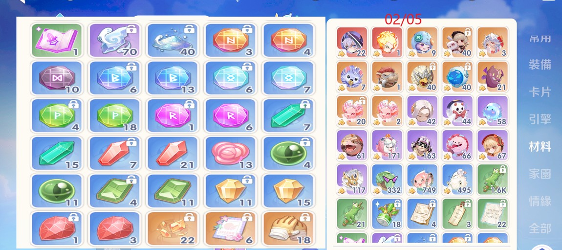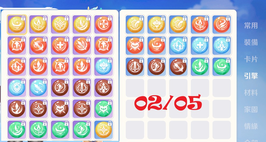 持續練等中 所有圖示僅參考 持續玩中會有稍許變動 有興趣歡迎詢問 圖示拍攝為02/05