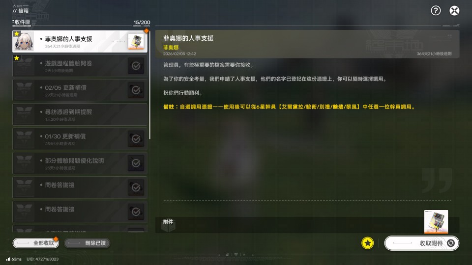 甦醒日是開服那天,六星自選卷還在